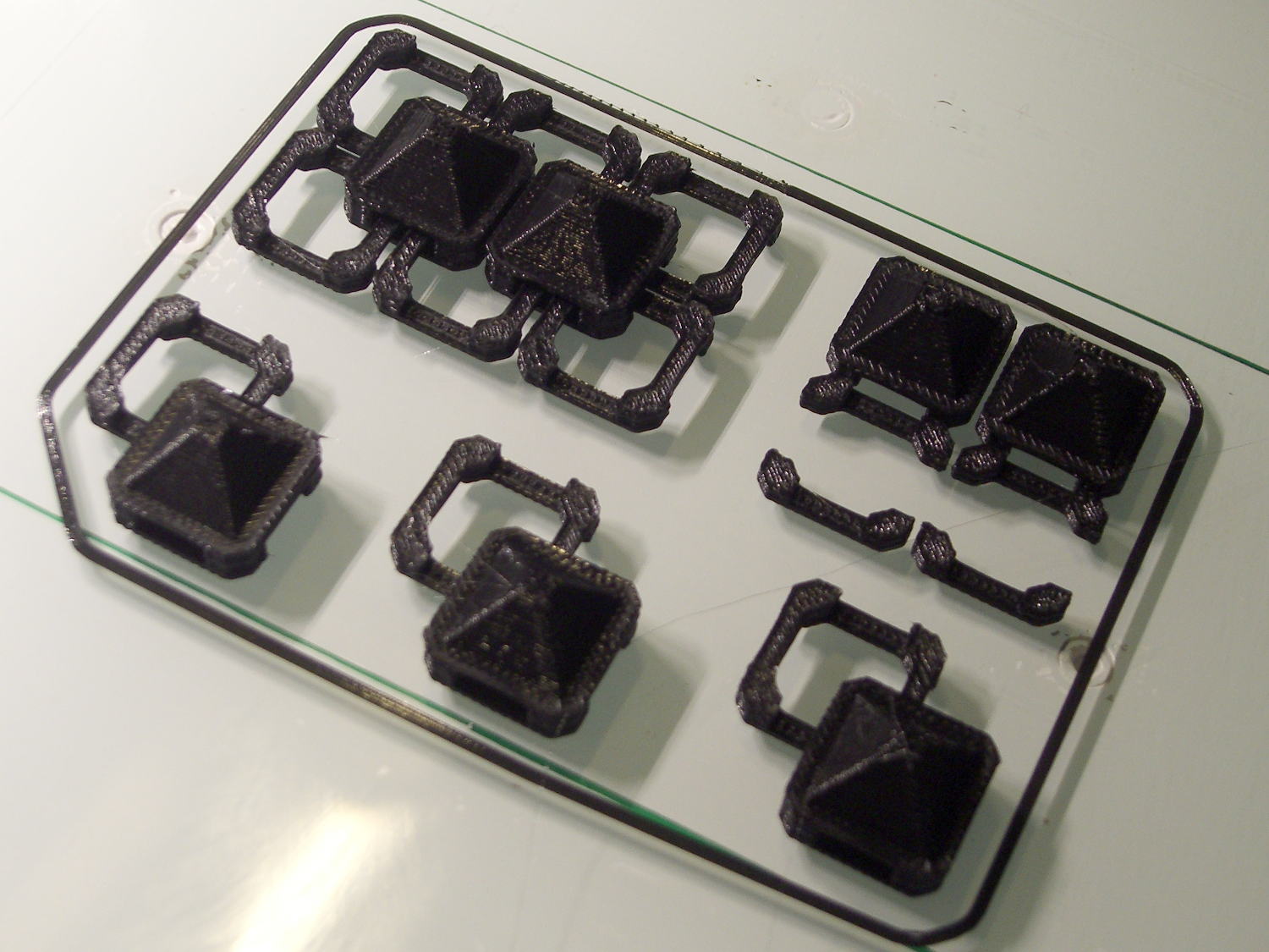 With about two meters of black PLA left on the spool, a pair of spare joiner links and a few tchotckes seemed in order: