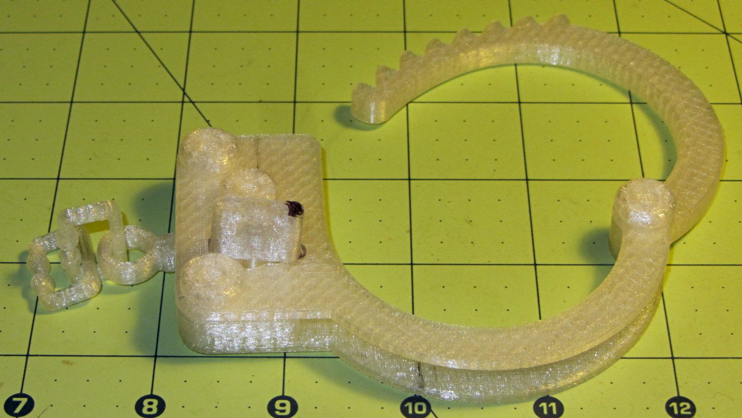 Alas, that shows the difficulty of using an STL file designed for a different printer, as the interlocking parts didn’t even come close to fitting and required major abrasive adjustment with a Dremel. One of the few successful prints reported on Thingiverse seems involve a commercial printer, so it’s not just the M2’s problem.