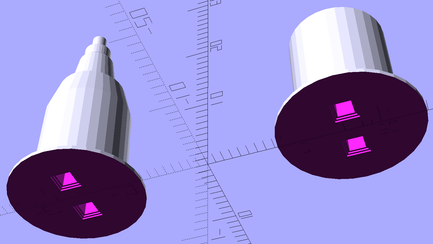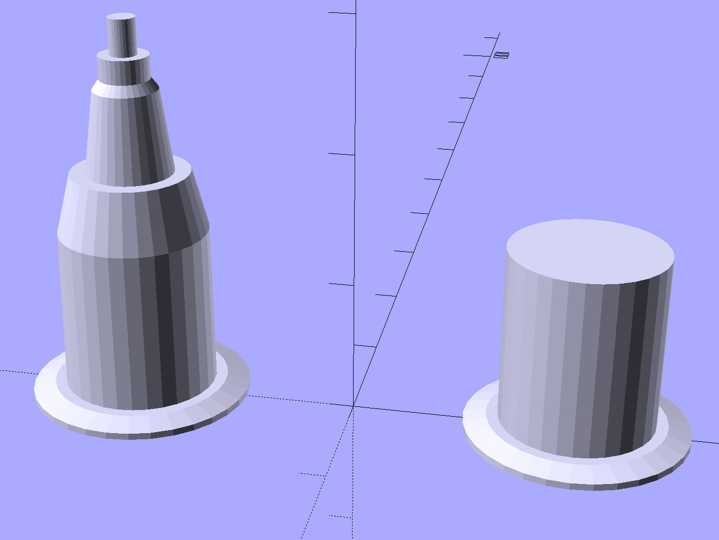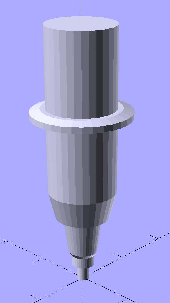 Then you feed that polygon into a rotate_extrude(), which spins up a reasonable simulacrum of a plotter pen: