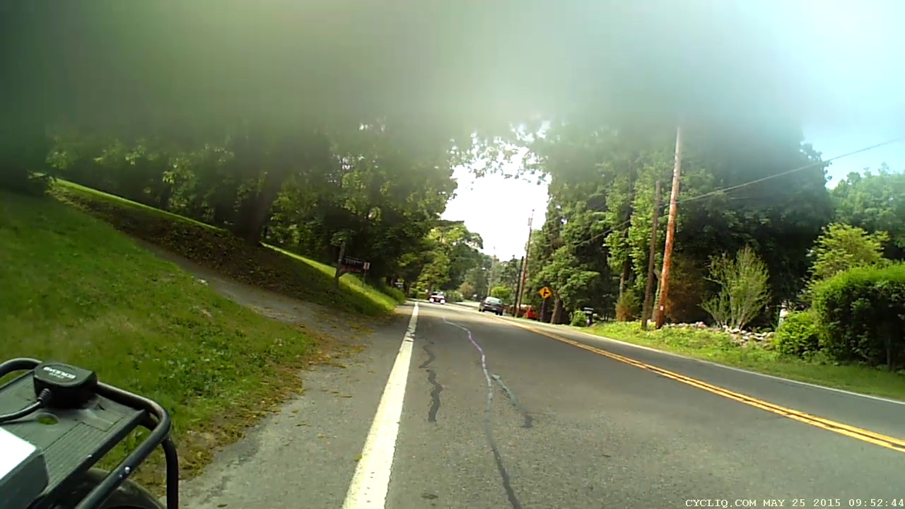 So I stuck a snippet of ordinary “transparent” (it’s actually translucent) adhesive tape across the top of the Cycliq Fly6 camera lens: