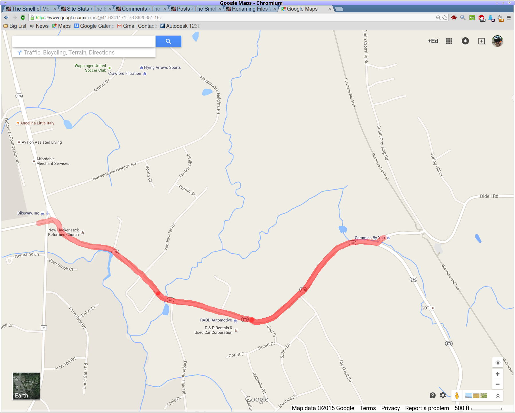 Entering Rt 376 from Diddell Road after leaving the Dutchess Rail Trail:
