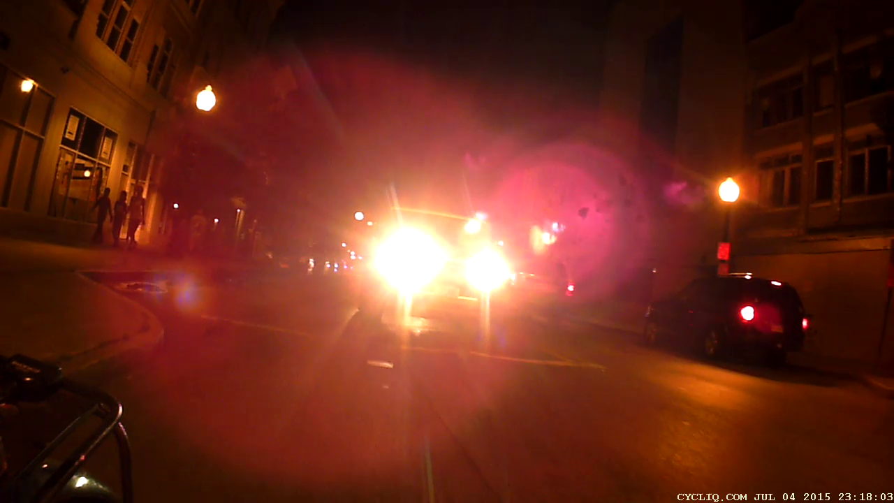 The Cycliq Fly6 faces a major challenge from in-its-face headlights, even with some background streetlighting: