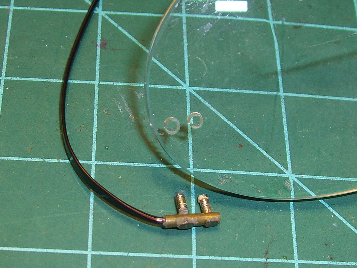 The other temple worked loose inside the brass tube and rotated freely, so I yanked it out, bashed the tip slightly flatter, and epoxied it back in place, along with overcoating the epoxy dots on the lens to forestall another failure.