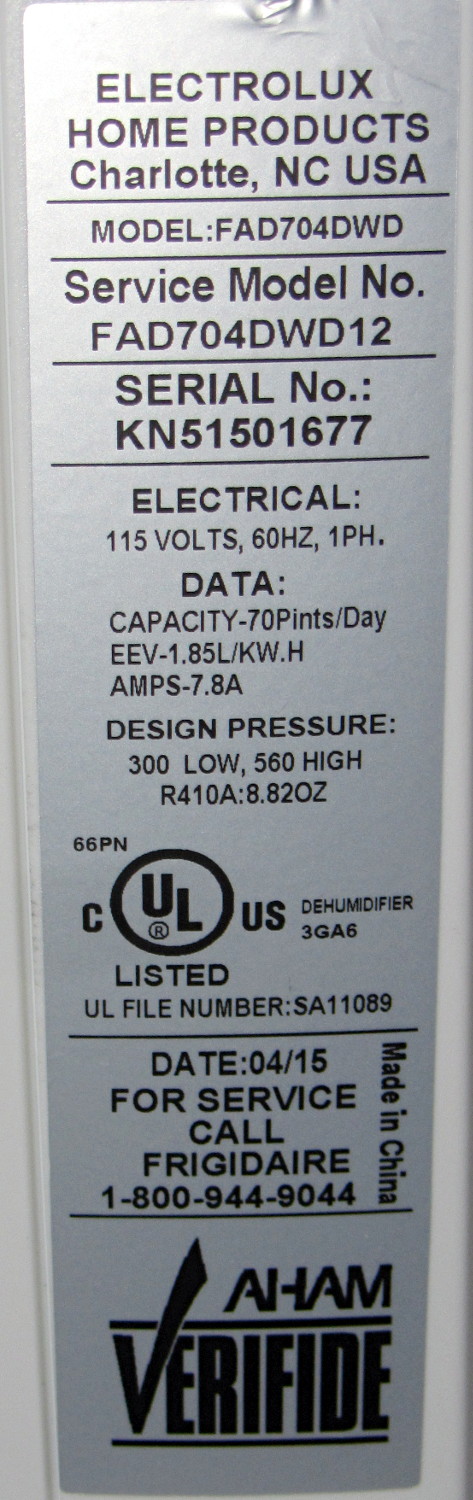 The new one says Frigidaire on the front, but the label says Electrolux: