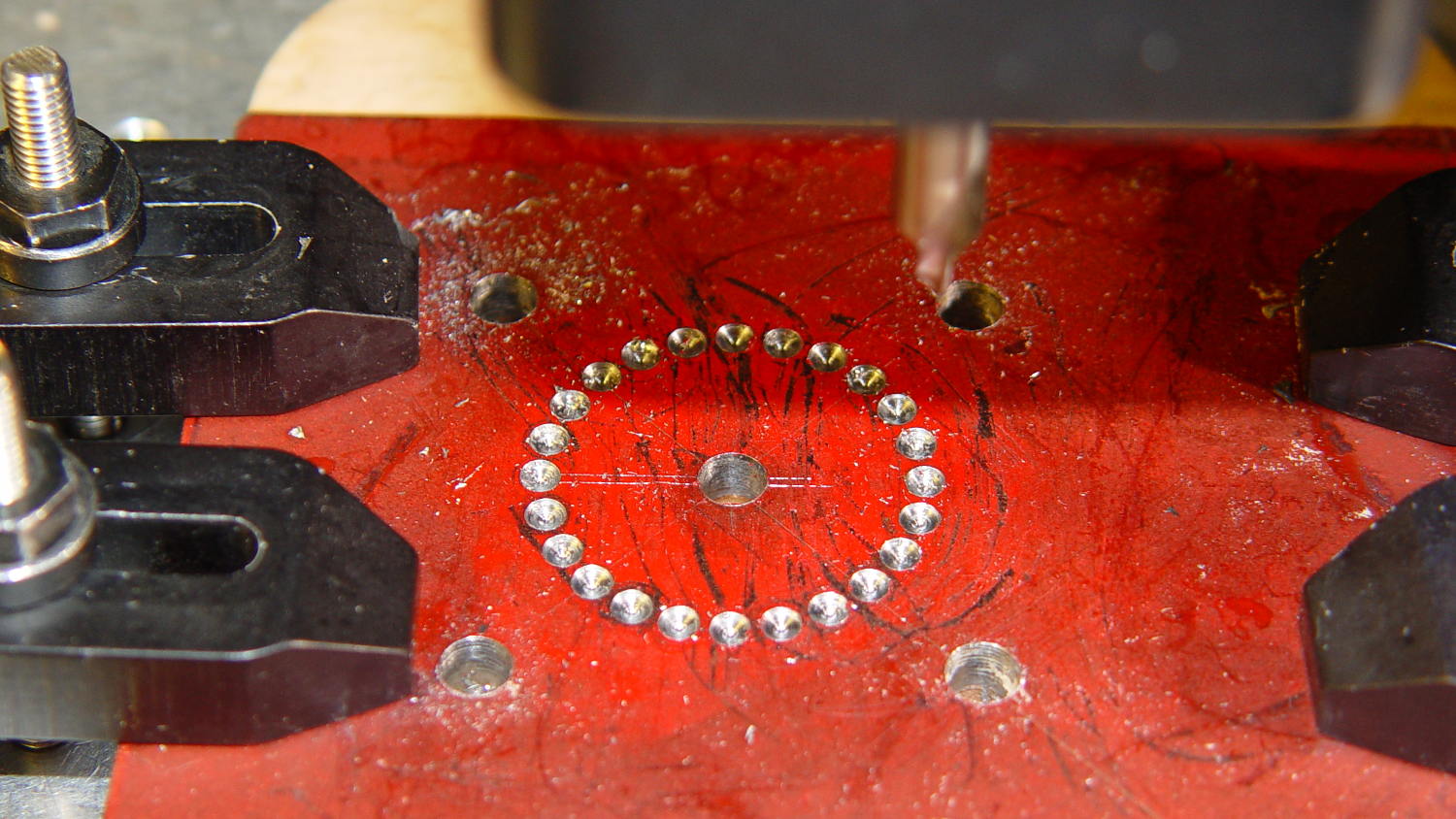 Did you know you can drill a full circle of holes in polar mode with something like: G90 G0 Y0 X25 (set up desired radius; could also use @25 ^0) and then something like G91 G81 R1 Z-8 ^15 L24 (drill 24 holes incrementing 15 degrees before each hole)?