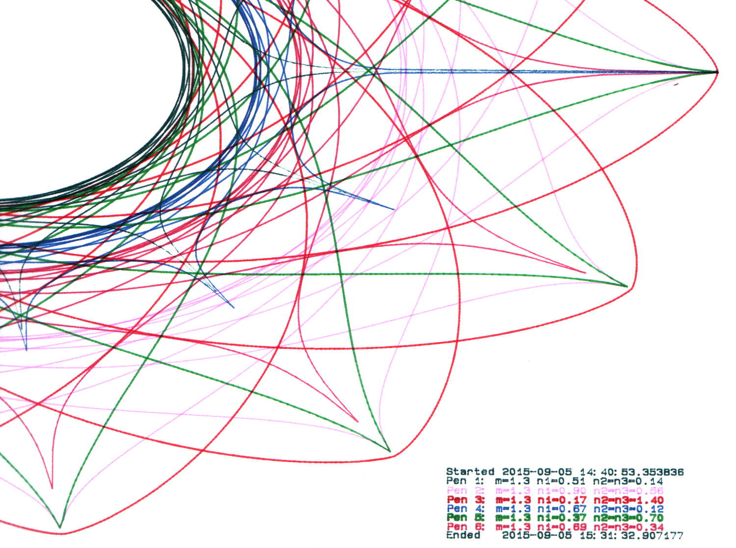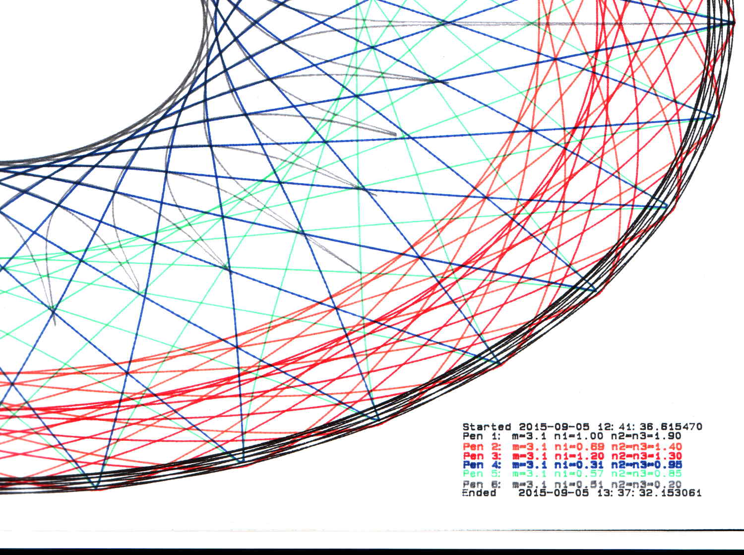 By now, I have half a dozen baggies each containing half a dozen plotter pens, plus a demo program that can produce good-looking Superformula plots, so I can do this without any hassle: