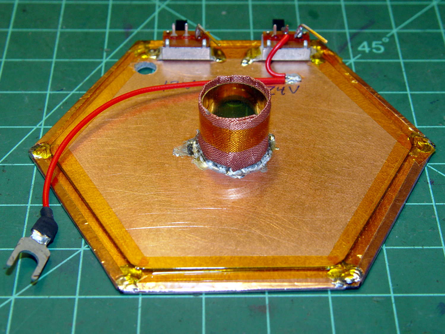 Soldering a smaller hex to the center of the bonded plate produces an isolated plane: