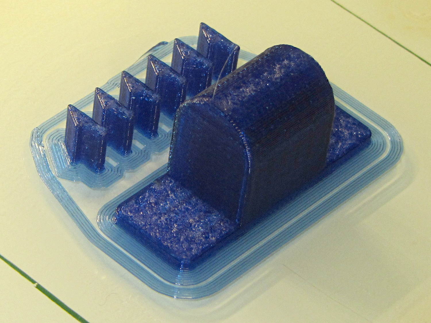 The brim provides enough platform footprint around the tabs to keep them upright, but obviously isn’t needed around the knob. Although you could wrap a modifier mesh around one or the other, trimming the brim off the knob with a precision scissors seemed more straightforward.