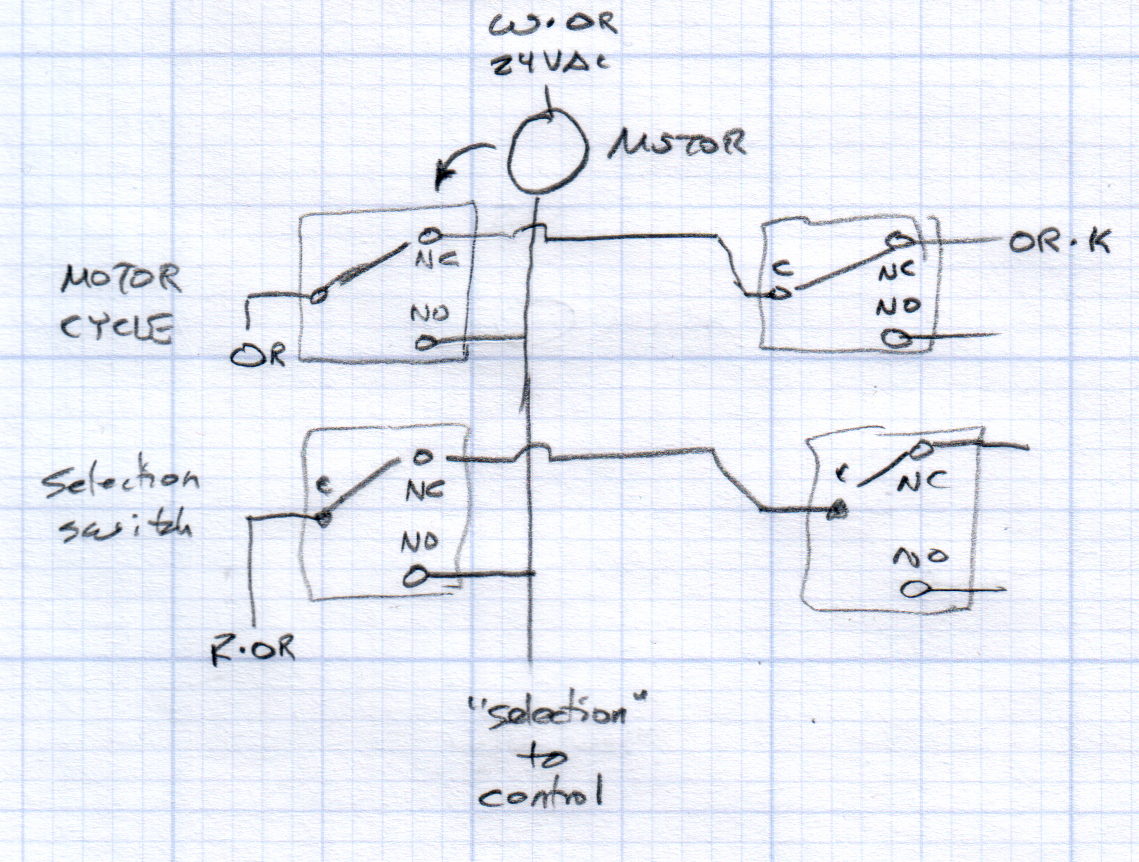 Each selector and motor cycle switch pair interact with the motor thusly: