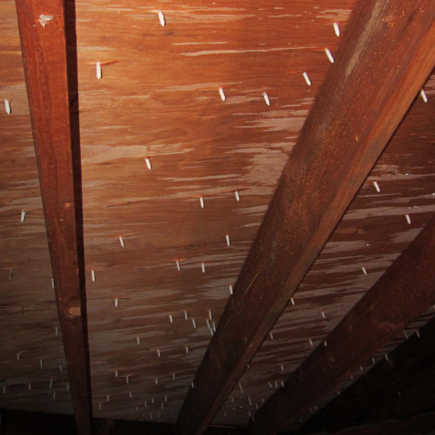 A cold snap in early January caught plenty of humidity inside the house and, in fact, the attic temperature dropped so abruptly that the nails protruding through the roof iced over: