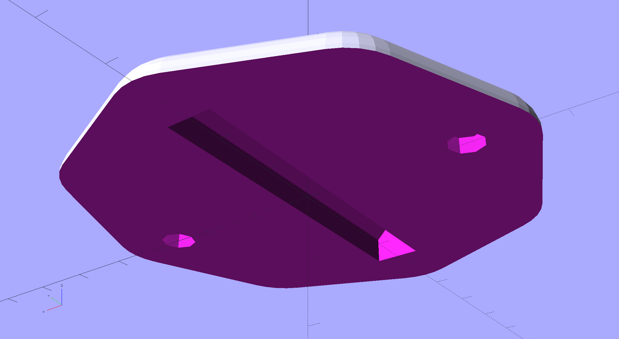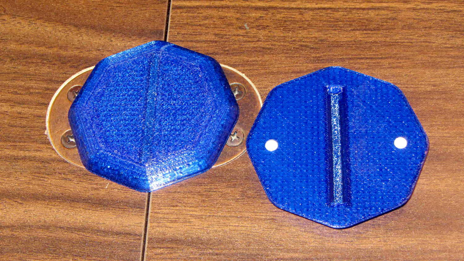 If I’m right about the desirability of pointiness, then only four vertexes (at north / south / east / west) may work better than that shapely octagon. Conversely, if I’m wrong, they’d be aligned with the hinge axis at the NE / NW / SE / SW corners. If all else fails, we’ll try a rounded hockey puck.