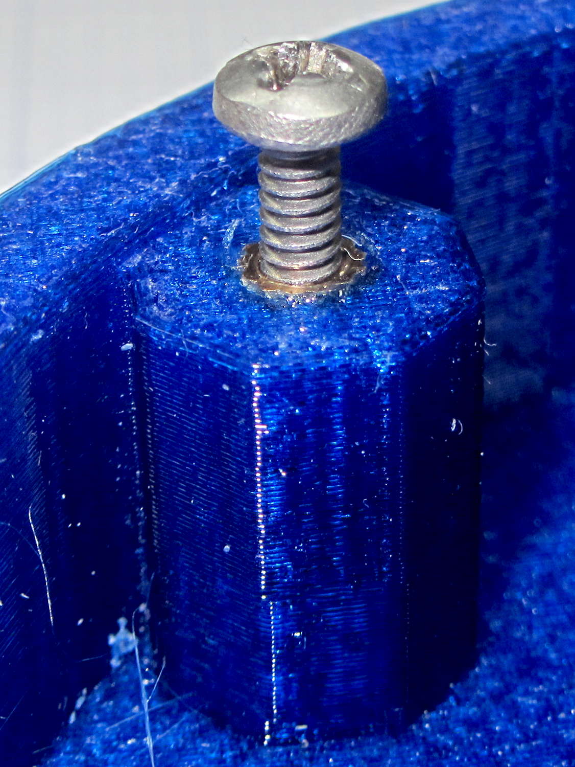 Putting The Right Amount of epoxy on the insert requires dialing back my “The bigger the blob, the better the job” enthusiasm, but wasn’t all that difficult. It’s certainly more tedious than just ramming the inserts into a printed hole and might actually produce better retention. I doubt that will make the least difference for (almost) anything I build.
