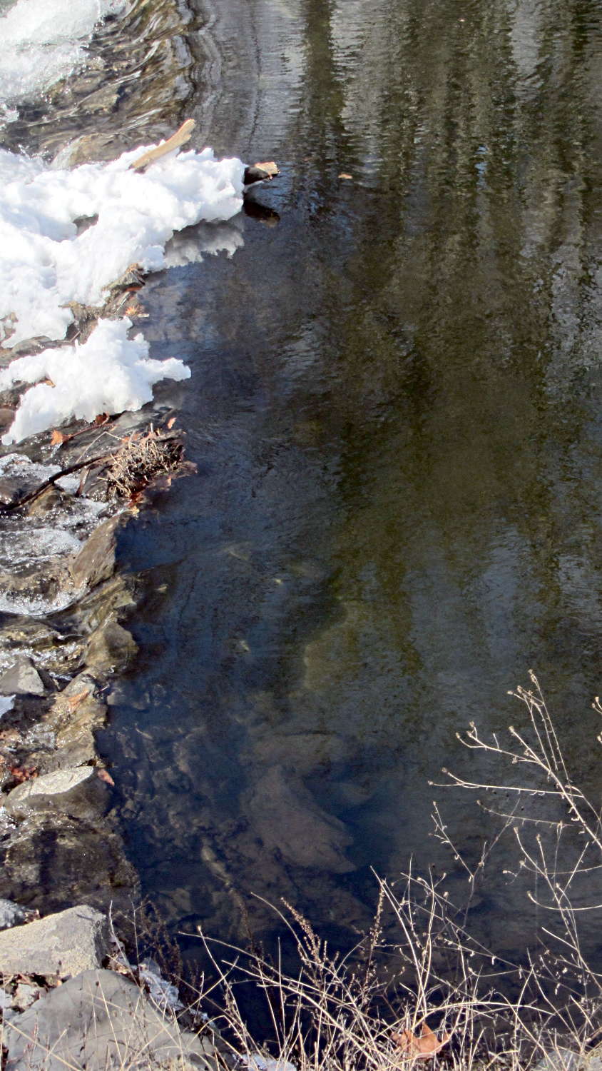 Heavy rain during an unseasonably warm spell rearranged the deadwood over the Red Oaks Mill Dam: