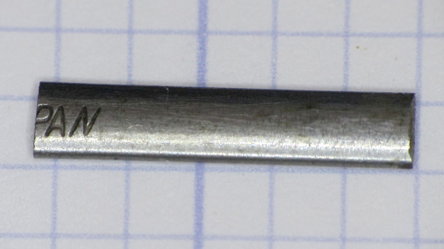 It’s 13.3 mm long, 1.0 mm thick, tapers slightly from 2.8 mm on the end that once said “Japan” to 2.76 mm on the other, and that’s all we know about it.