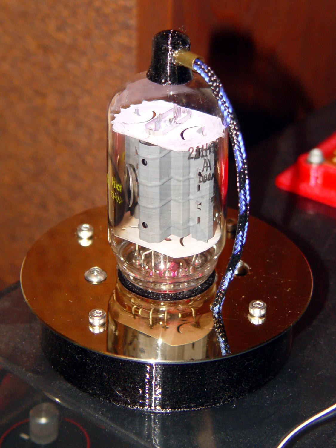 The mica sheets in those 21HB5A tubes look like they have a powdery white coating, quite unlike the usual shiny dark-silver mica sheets in my other tubes, that lights up wonderfully well under the LEDs.