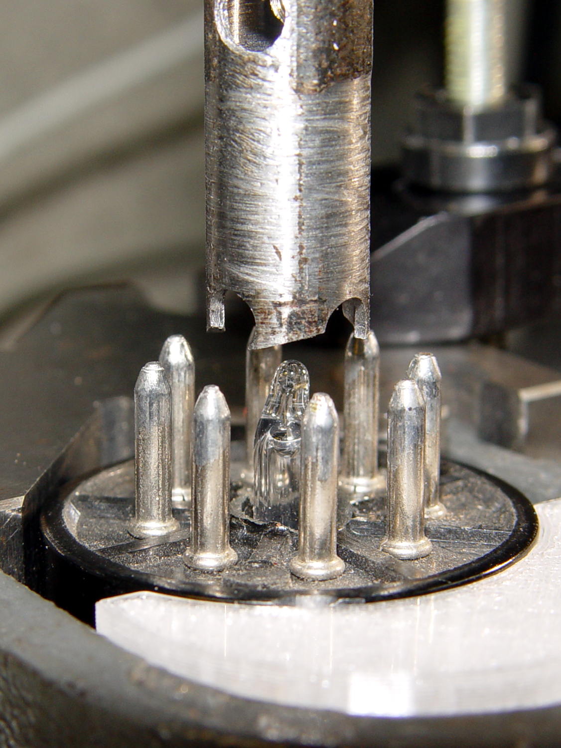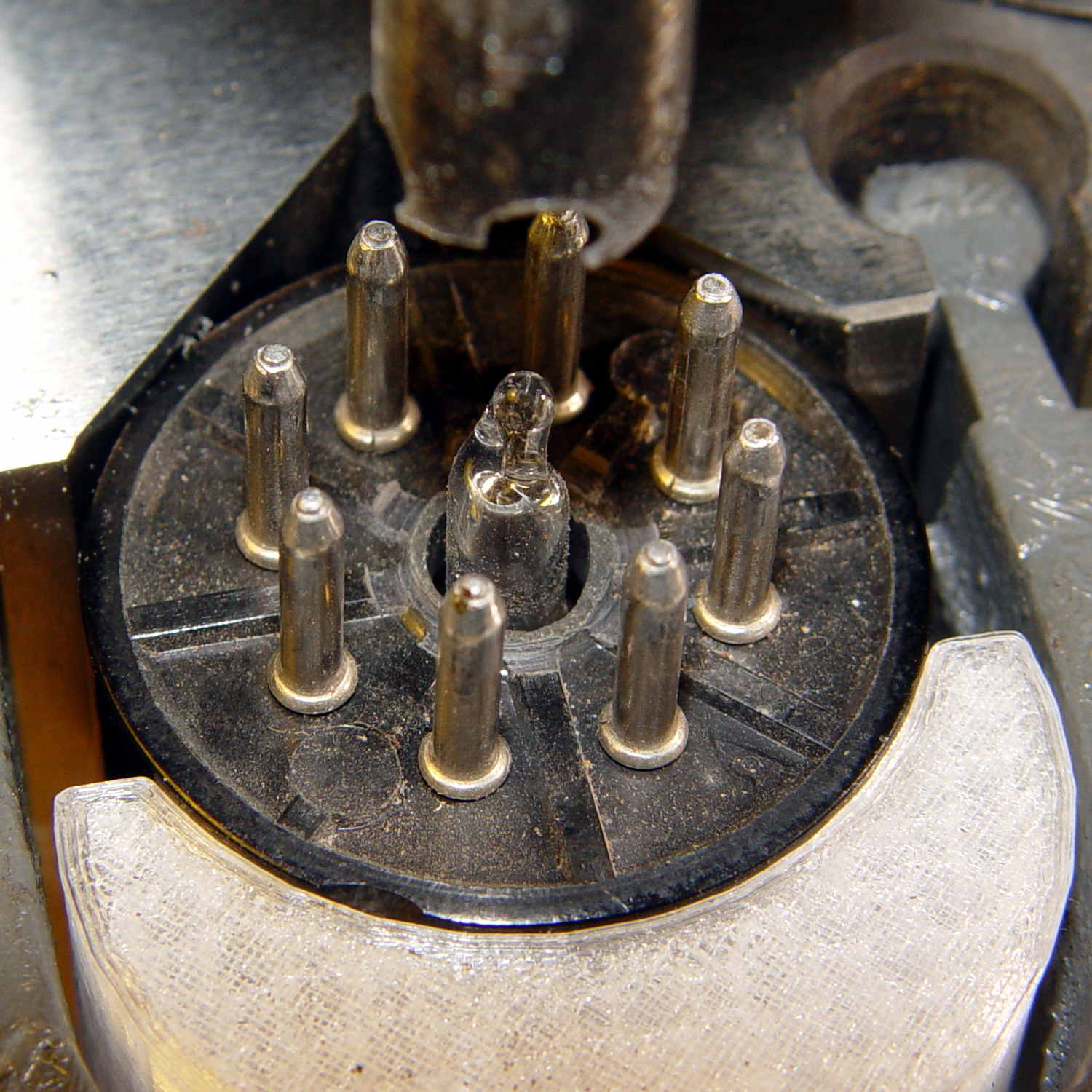 Just inside the scuffed ring from the drill, you can see the fractured ring where the original one-piece Bakelite spigot / key / post broke off.