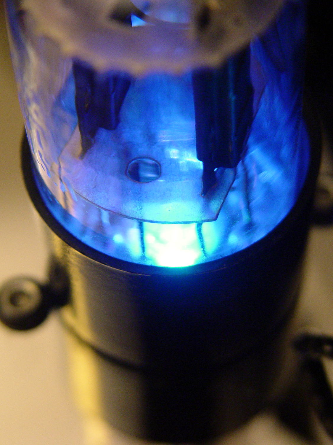 The (knockoff) Neopixel LED sits directly below the evacuation tip and is about the same diameter, so much of that enlarged opening will be in shadow. Despite that, the tube does seem noticeably brighter: