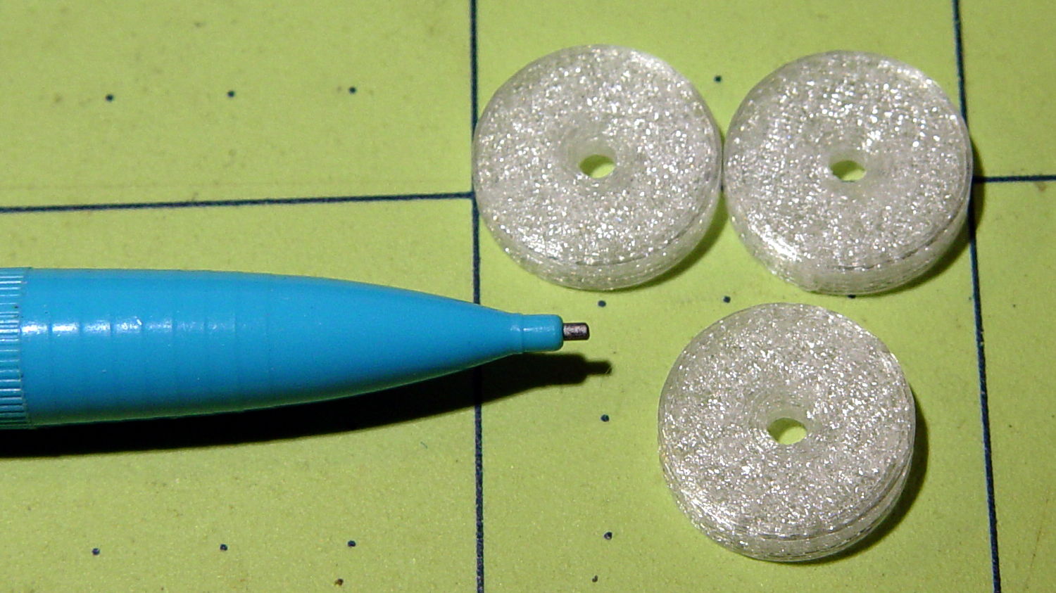 The outer perimeters have 64 facets, an unusually high number for my models, so they’re nice & smooth on the ruler. Even though I didn’t build them sequentially, they had zero perimeter zits and the OD came out 0.500 inch on the dot.