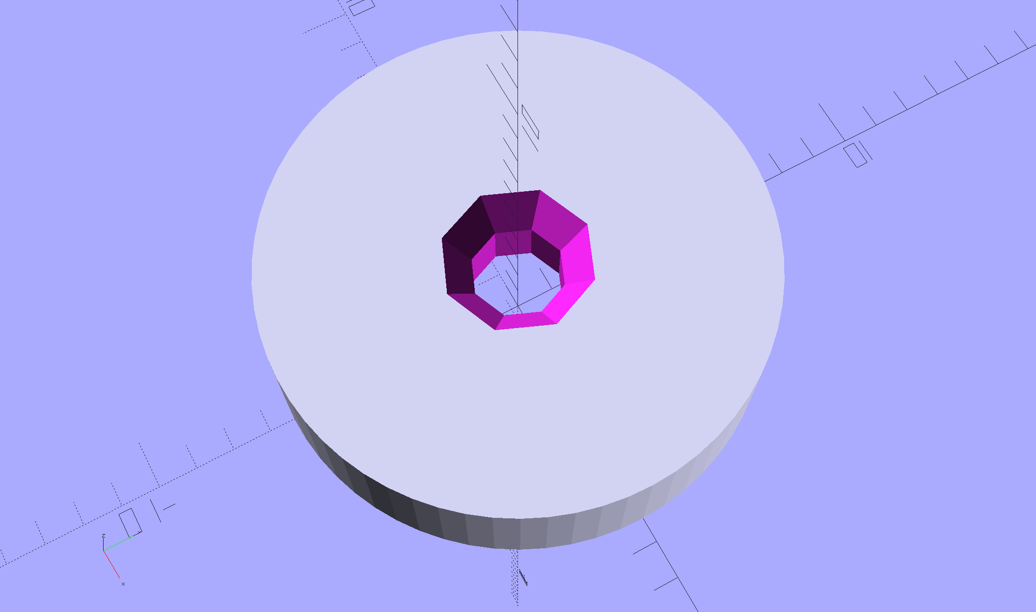 | cylinder(d=(FixDia + HoleWindage),h=Height,$fn=Sides); | |