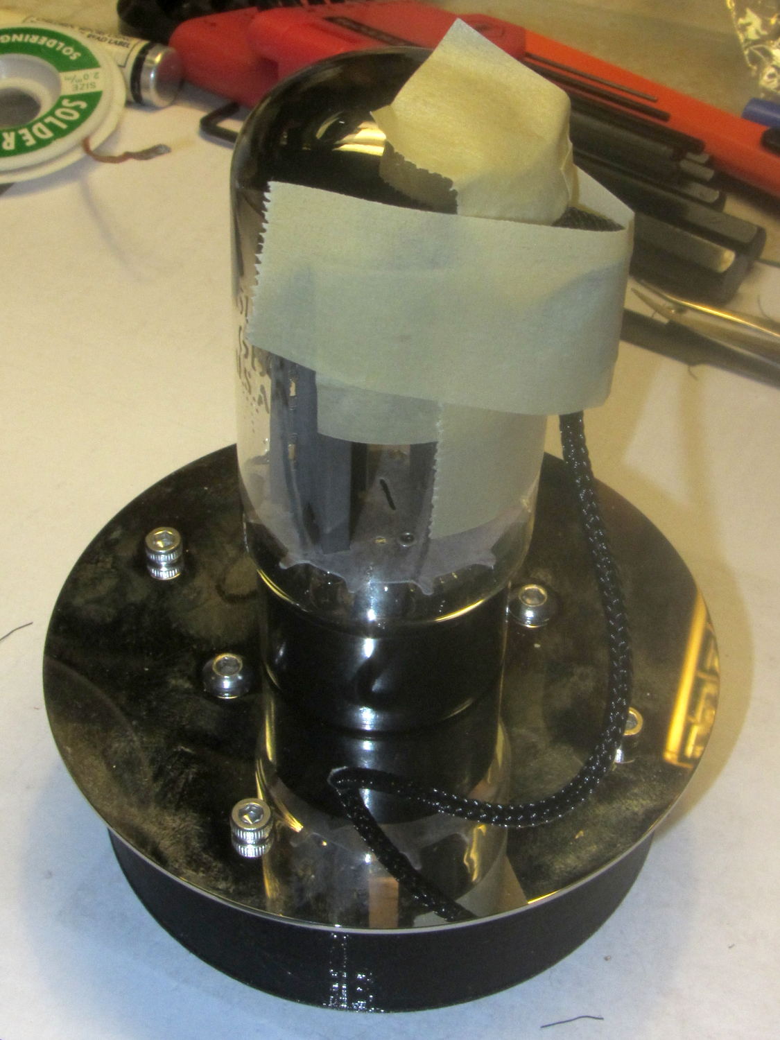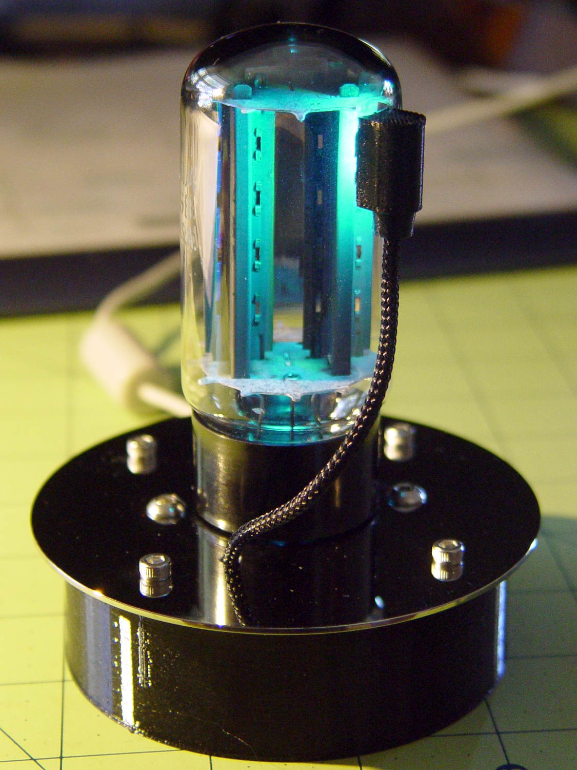 The getter flash covers the entire top of this tube, so I conjured a side light for a rectangular knockoff Neopixel: