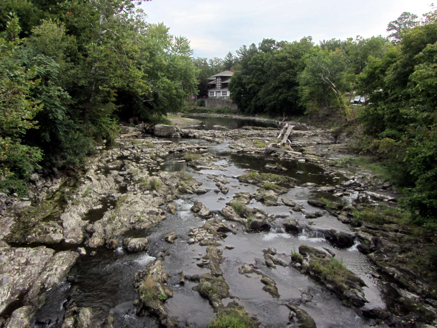 Just upstream from the bridge, you can see how water carves potholes into the rock: