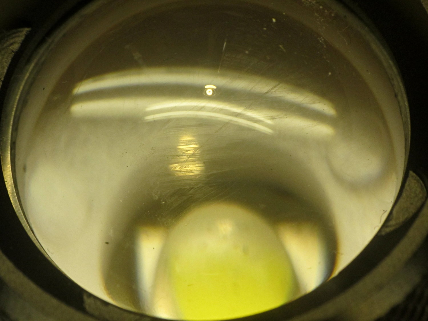 The inside of the front focusing lens carries an array of scratches or, perhaps, a greasy fingerprint that serves the same purpose: