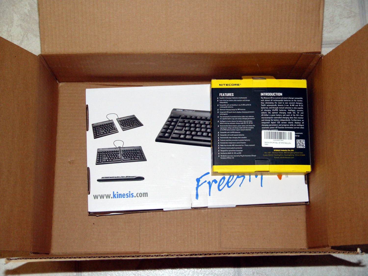 A keyboard and cylindrical cell charger arrived intact, with absolutely no credit due to Amazon’s careful packaging: