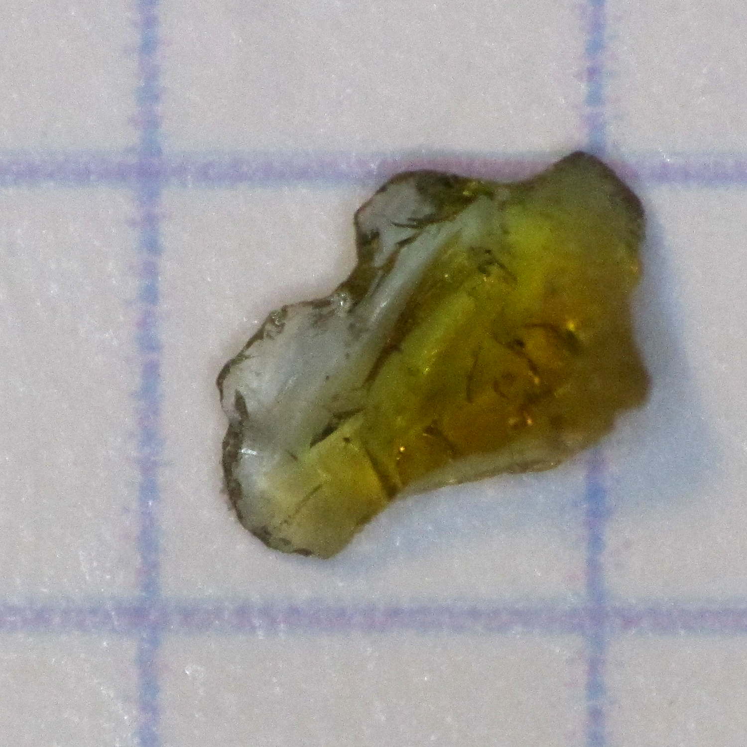 The chip emerged from one of two adjacent gashes in the middle of the tread, but hadn’t quite cut through the tire. A somewhat larger chip (that’s a 0.1 inch grid) in the other gash cut through the Schwalbe Marathon’s protective belt to puncture the tube, then fell out.