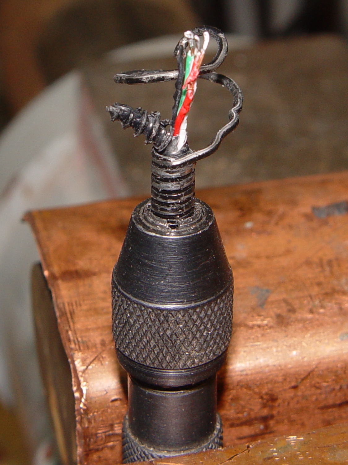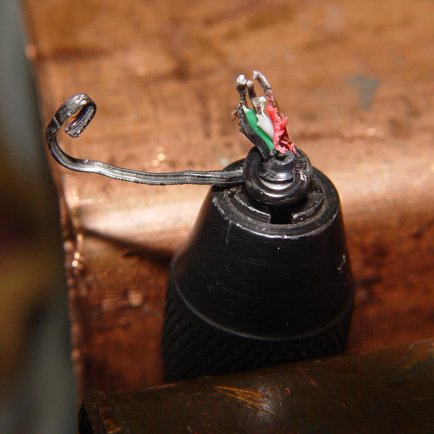 The black helix aimed off to the side seems to be plastic from the USB shell injection-molded around the connector hardware.