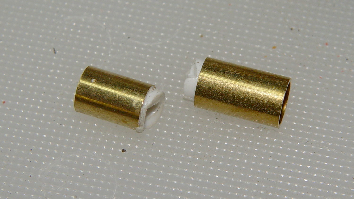 Stuffing the boss fragments into close-fitting brass tubes, with a dash of IPS #3 on the broken faces, put them back together reasonably well:
