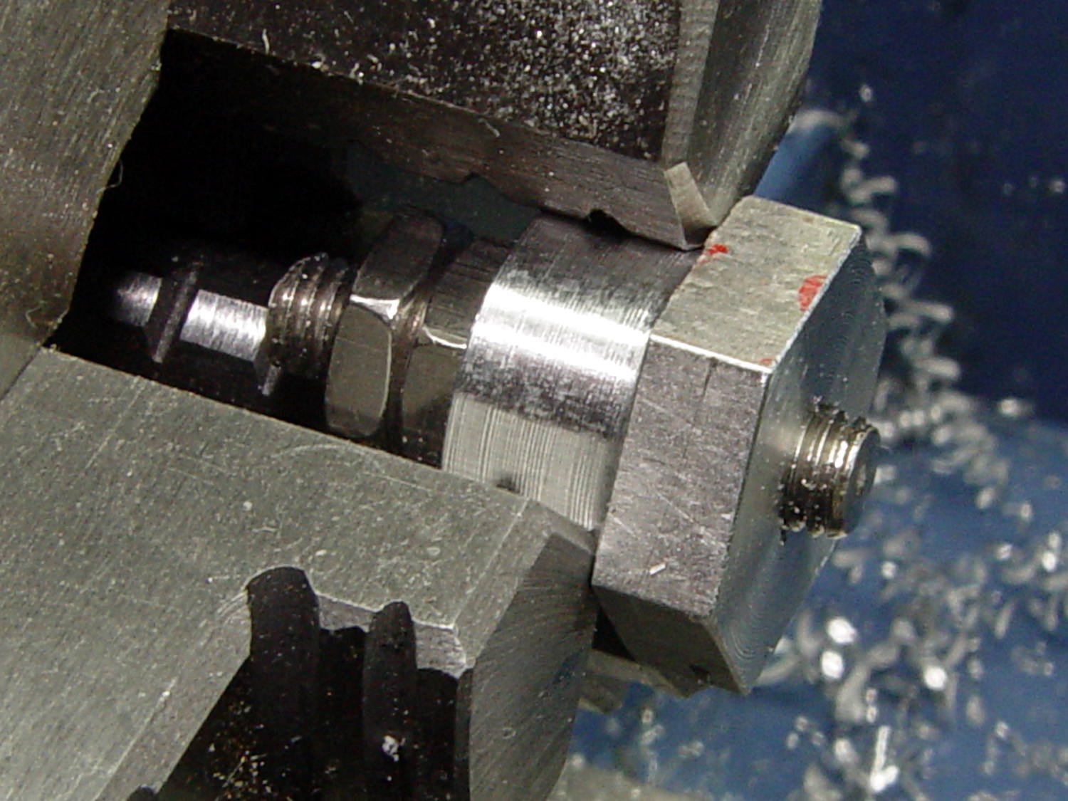 I have a few feet of 1″ brass hex stock that fills that role. I’ll mark one facet so I don’t have to worry about runout with the 3 jaw chuck. (The only reason I can see to turn it down would be if you had a serious thrust load–maybe for a fixture for 1/2″ or bigger bolts…)