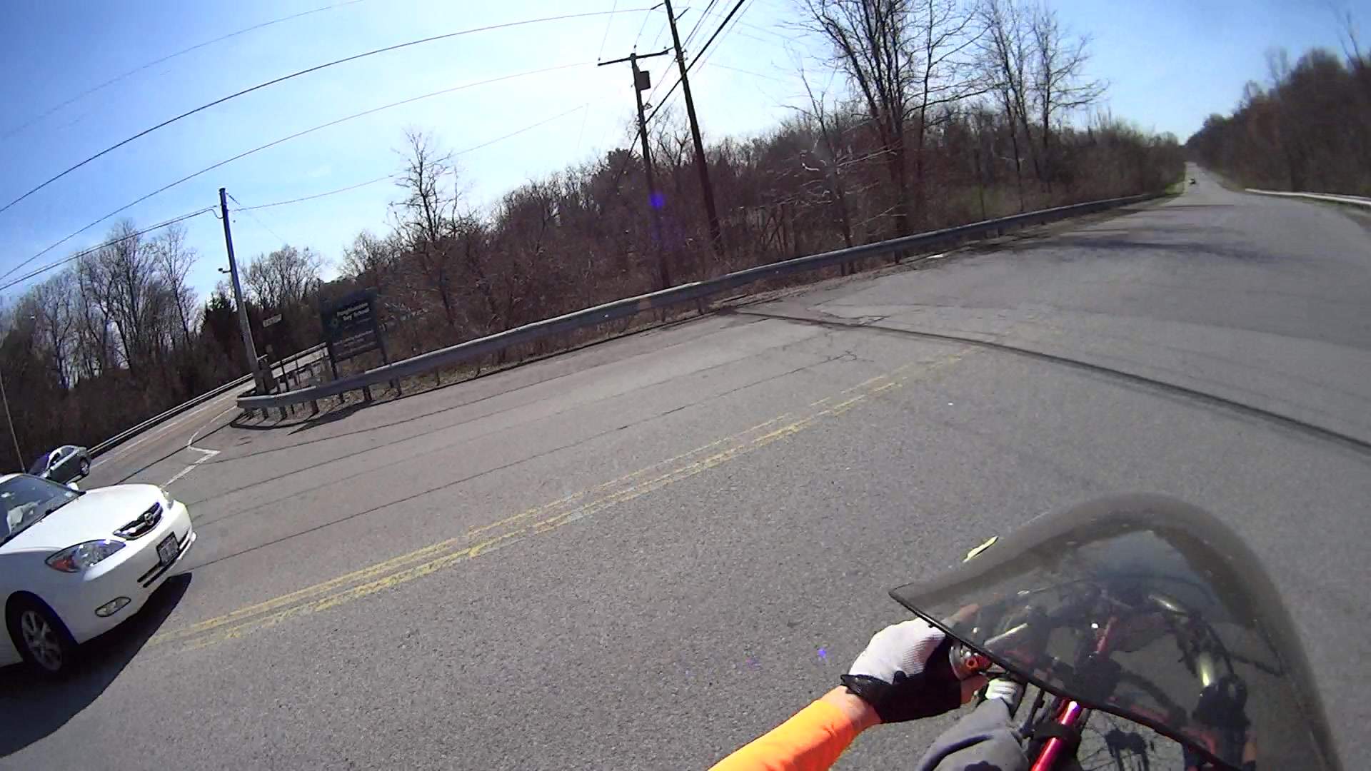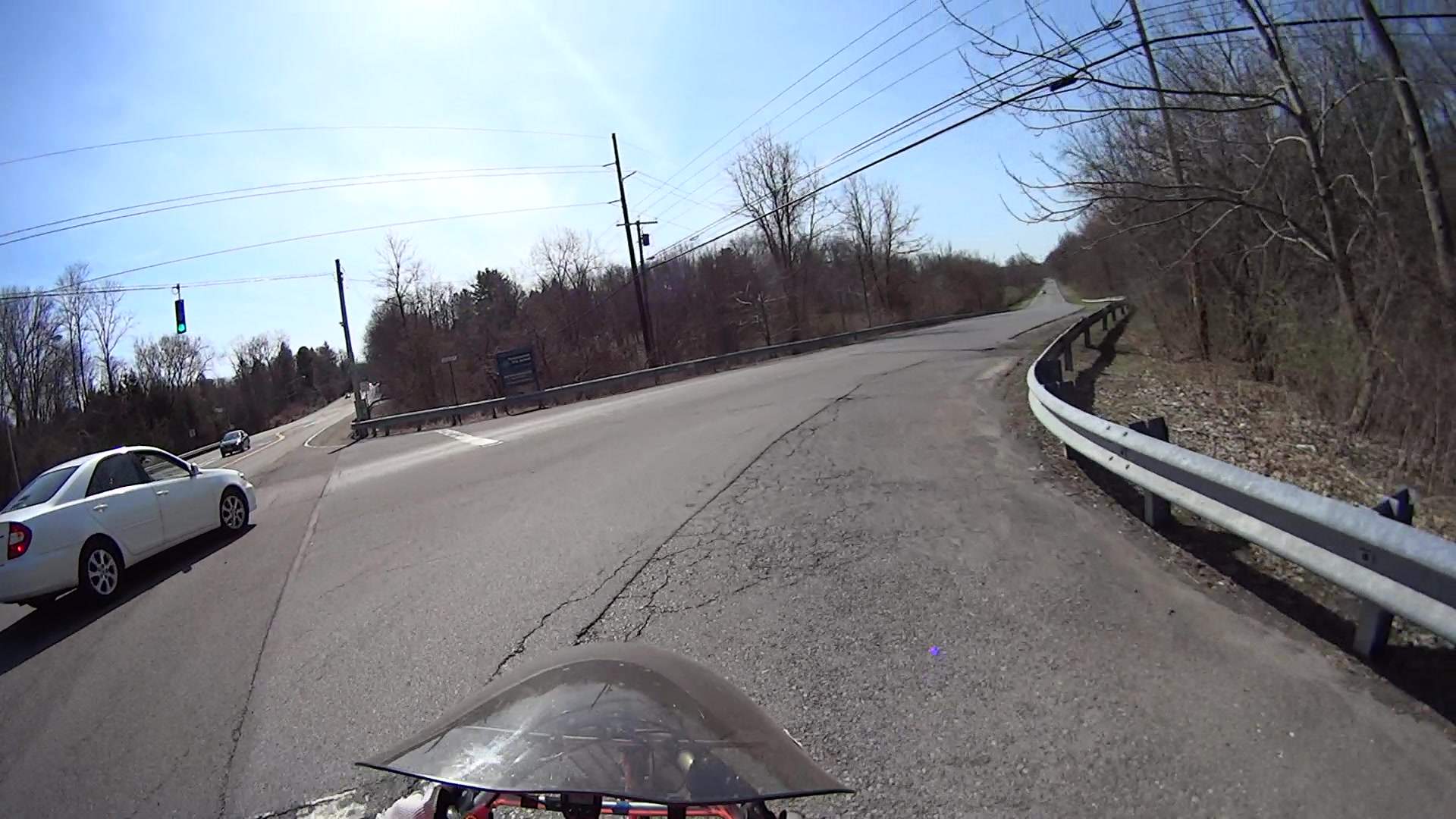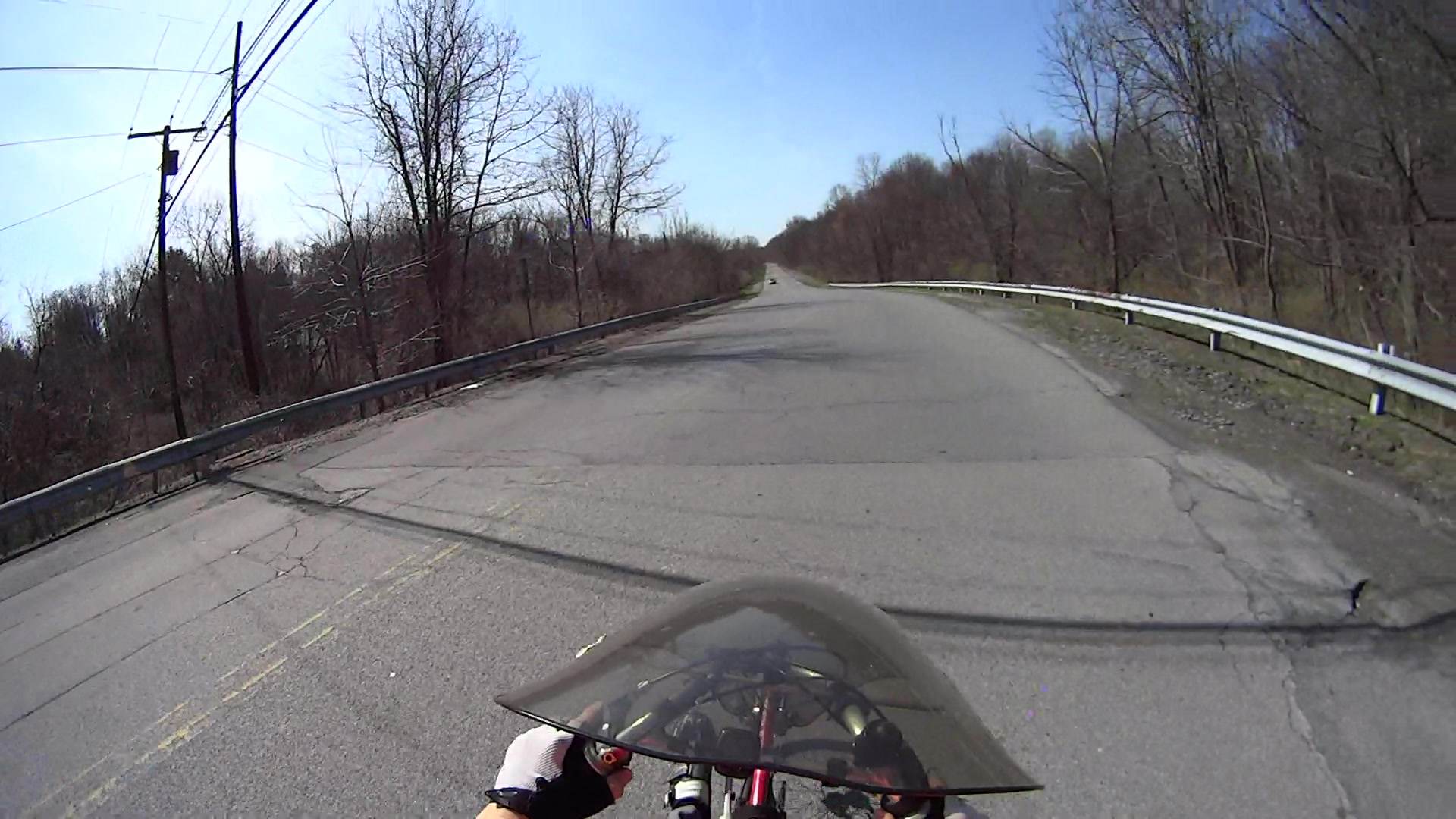 I’m back upright in the middle of the lane, with the shoulder ending in a pothole to my right.