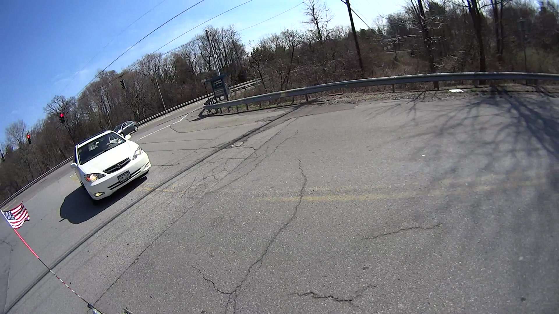 Remember, I’m wearing a fluorescent (“safety”) orange shirt, running a blinky light (which is also the rear camera), and towing a trailer with a fluttering flag: I am not inconspicuous!