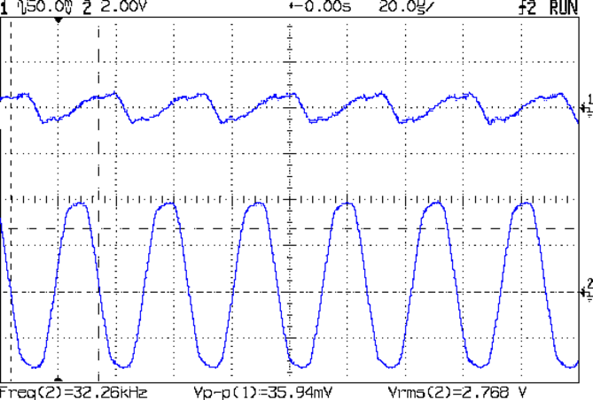 The ripple for an absurdly high amplitude 32 kHz signal amounts to 36 mV: