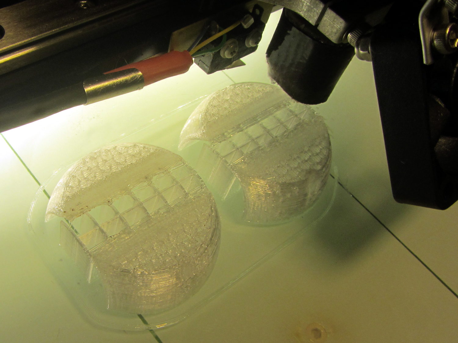 Flipping the hemispheres over so they printed U-channel upward didn’t work much better, even sitting on a flat section to eliminate the absurd part of the overhang. This view shows one hemisphere with the missing cap: