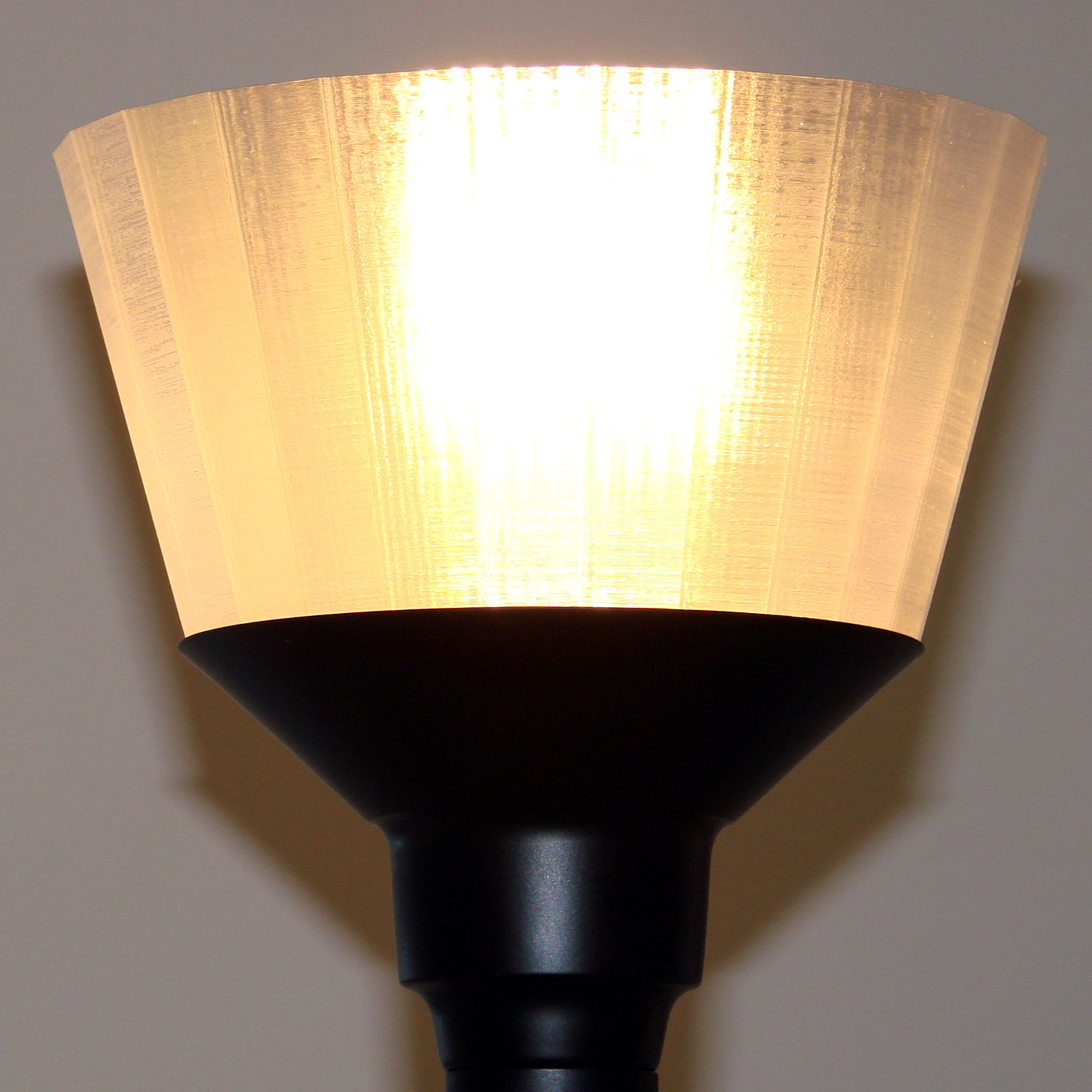 Alas, the M2 doesn’t have enough bed for that: embiggening the shade would put the inner surface too close to the bulb. The LEDs run far cooler than incandescents & CFLs, but still too hot for (my) comfort with a thermoplastic shell only an inch away.