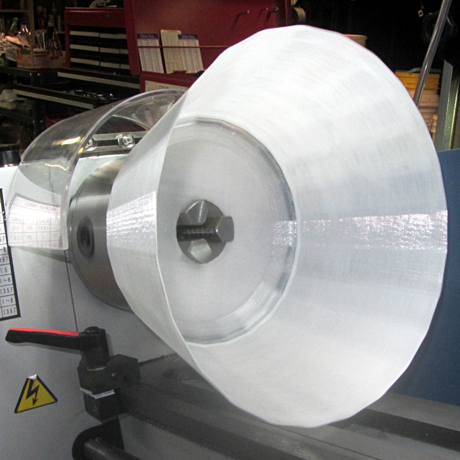 If the lathe perspective looks a bit weird, it’s perfectly natural: I raised the tailstock end enough to make the lower side of the shade just about horizontal. Given the gooey nature of XTC-3D, it wasn’t going anywhere, but I didn’t want a slingout across the lathe bed.