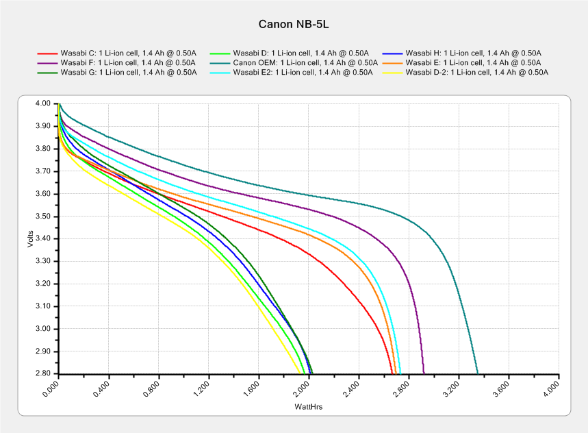 I re-ran a couple of the batteries to make sure they hadn’t faded away from disuse, which didn’t materially change the results. The lightly used Canon OEM battery continues to lead the, ah, pack.