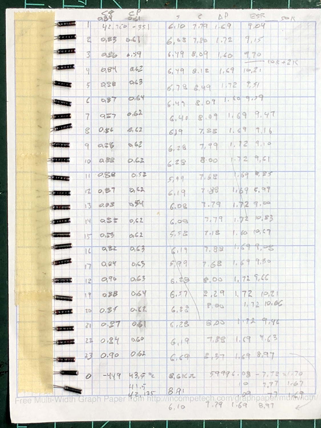 The alert reader will notice an un-measured 25th resonator at the bottom of the first batch. I dropped one from the second batch under the Electronics Workbench, found it, then also found its long-missing brother; now I have a genuine it’s-never-been-used resonator, just in case the need arises.