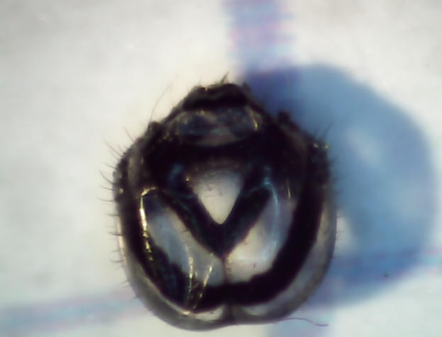 Apparently, the front end of the caterpillar (at the bottom of the picture) has a hard windshield reflecting the ring of LEDs around the camera lens. The caterpillar eats its skin after each molting, except for the windshield: