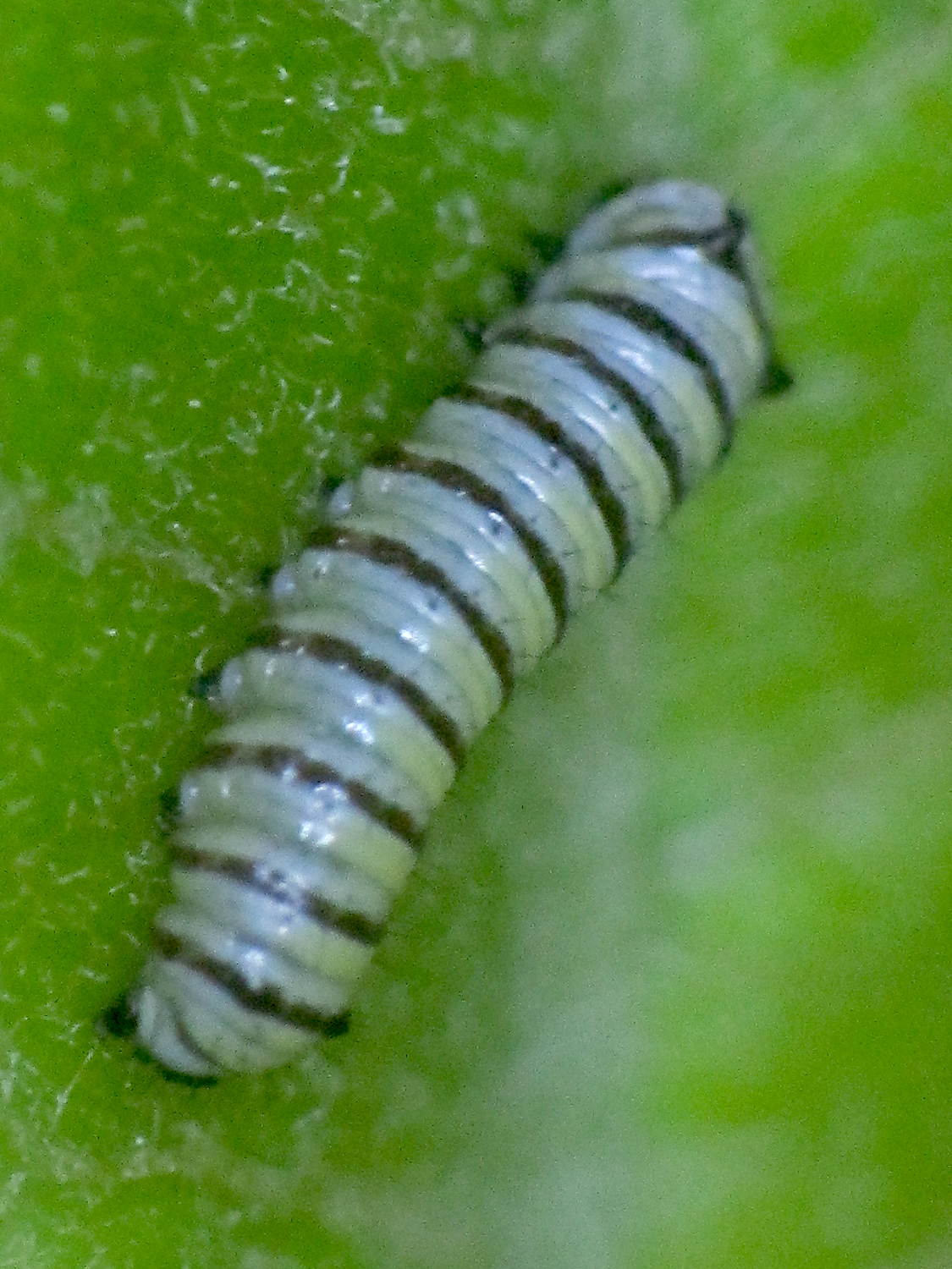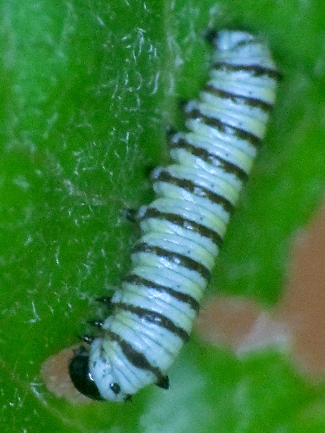 By August 2, a pair of caterpillars had hatched and grew to 3 mm: