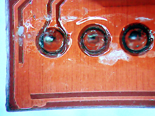 Yup, that trace is supposed to run around the corner without merging into the ground plane and, of course, it carries the +5 V power supply to the LCD board. Just another production goof and, I’m certain, the boards don’t get any testing because they’re so simple.