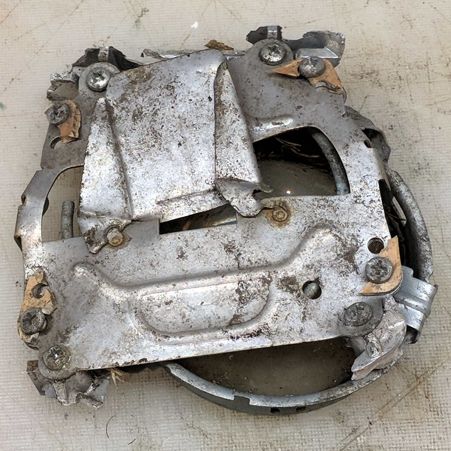 Both lens surfaces have a slight nubbly finish, perhaps to produce some side light around the main beam. The rectangular opening apparently shaped the low beam and doesn’t appear movable, so perhaps the car had separate headlights for the high beams.