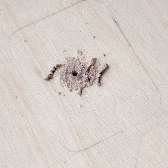 Rather than hammering the t-nut into the bench, gently & quietly pull it in place with a bolt atop a pair of washers: