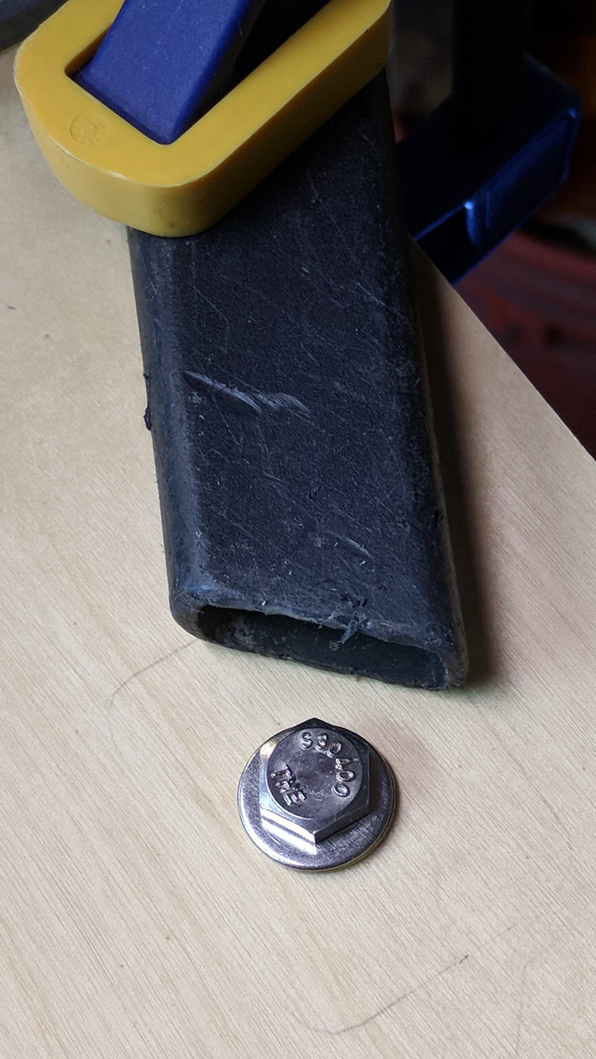 Yes, those are nylon bolts; my 1/4-20 bolt stash is greatly depleted. I picked up a small assortment of stainless bolts in useful sizes, but they top out at 1-½ inch.