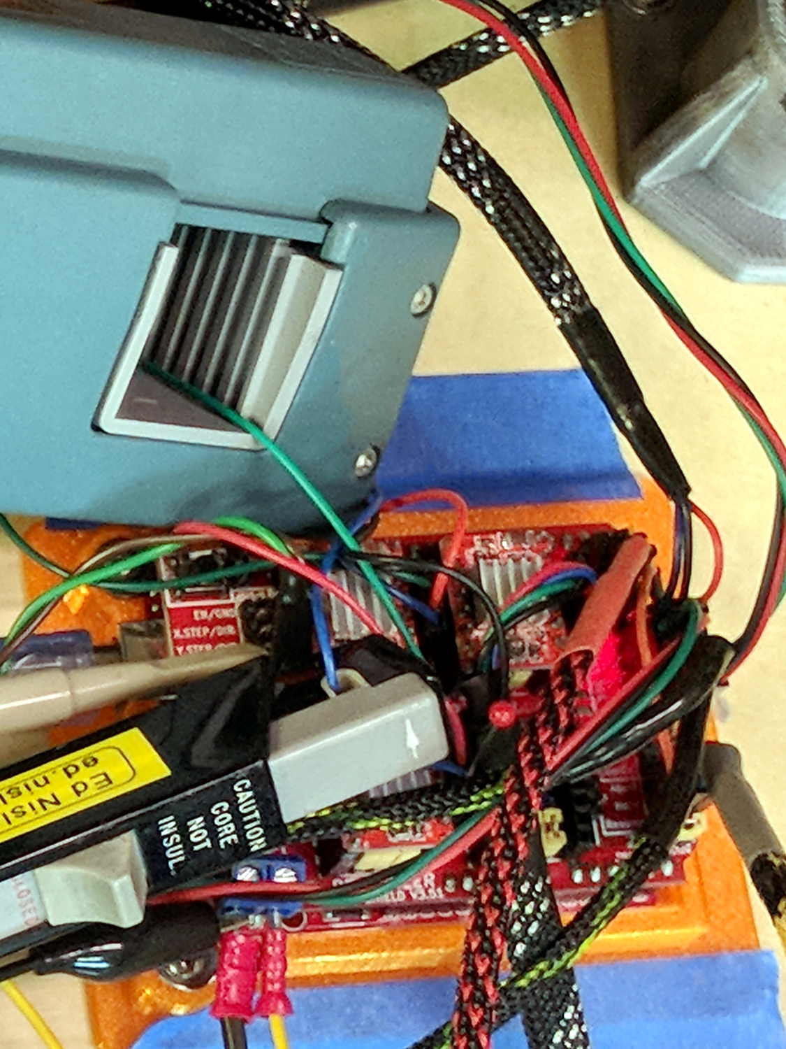 As part of installing the bar clamps, I packed away the Tek Hall effect current probes measuring the stepper winding currents: