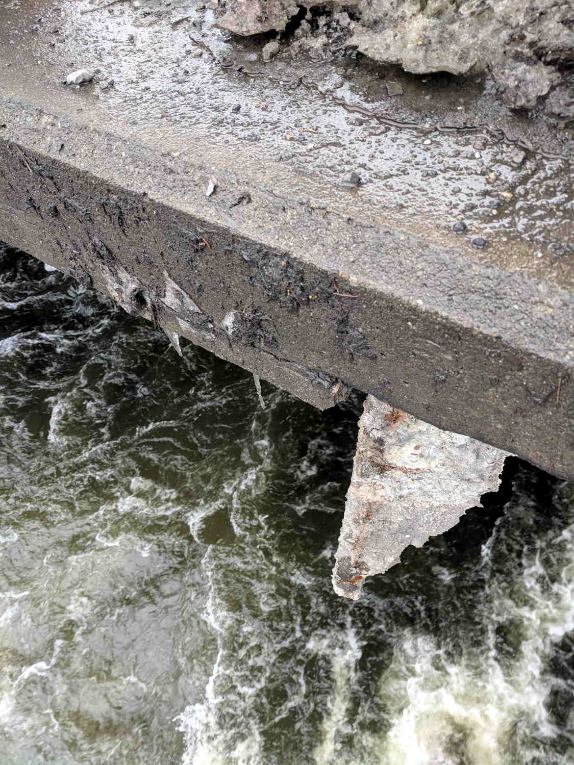 NYS DOT’s recent Rt 376 repaving projects improved the road surface, but the infractructure seems to be crumbling apace, as we spotted on a recent walk across the bridge over Wappinger Creek: