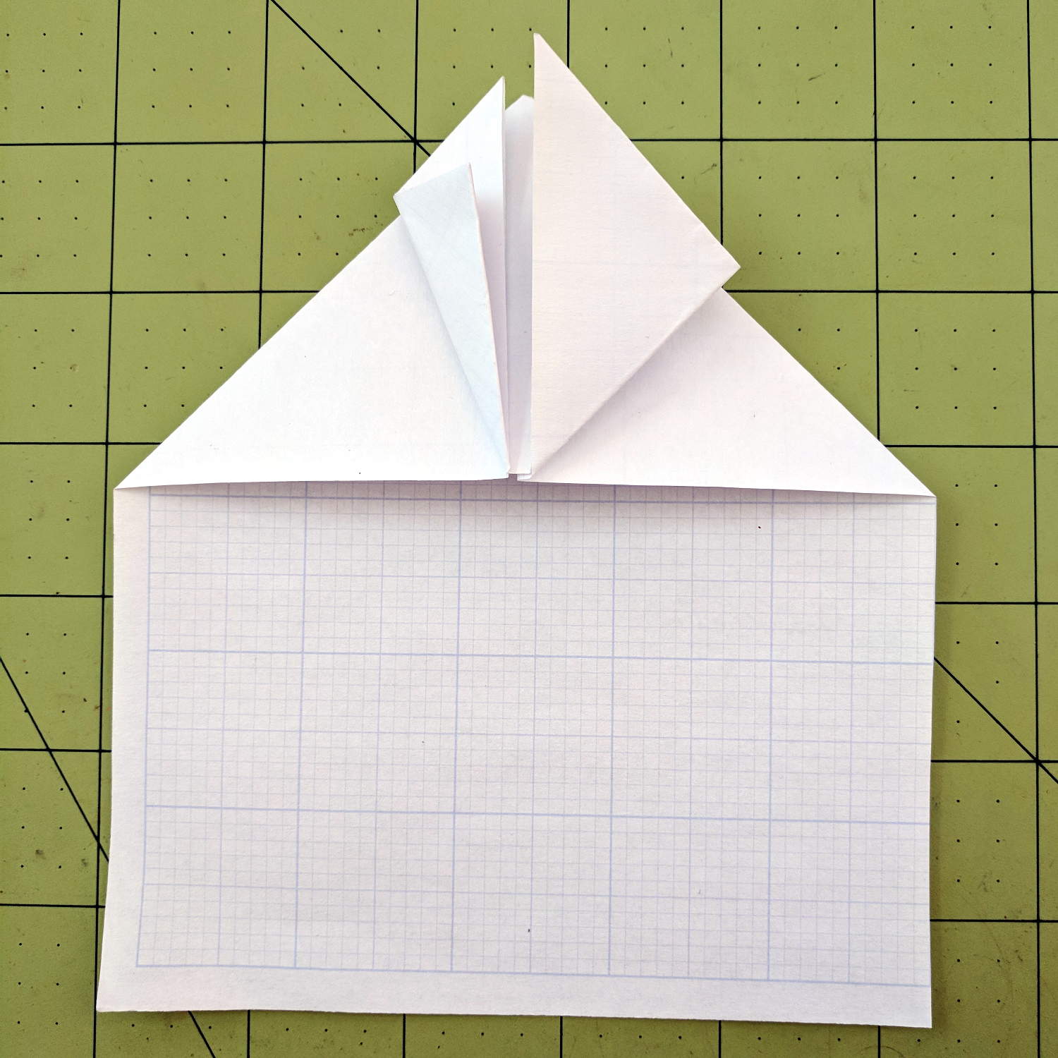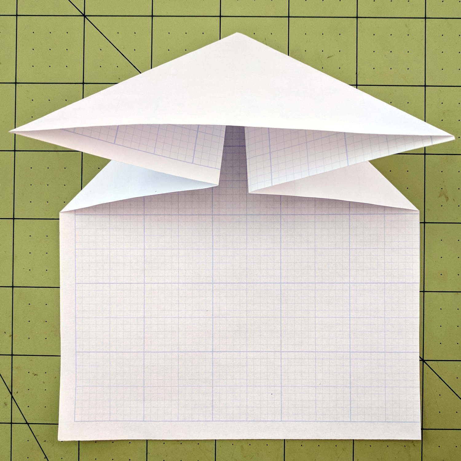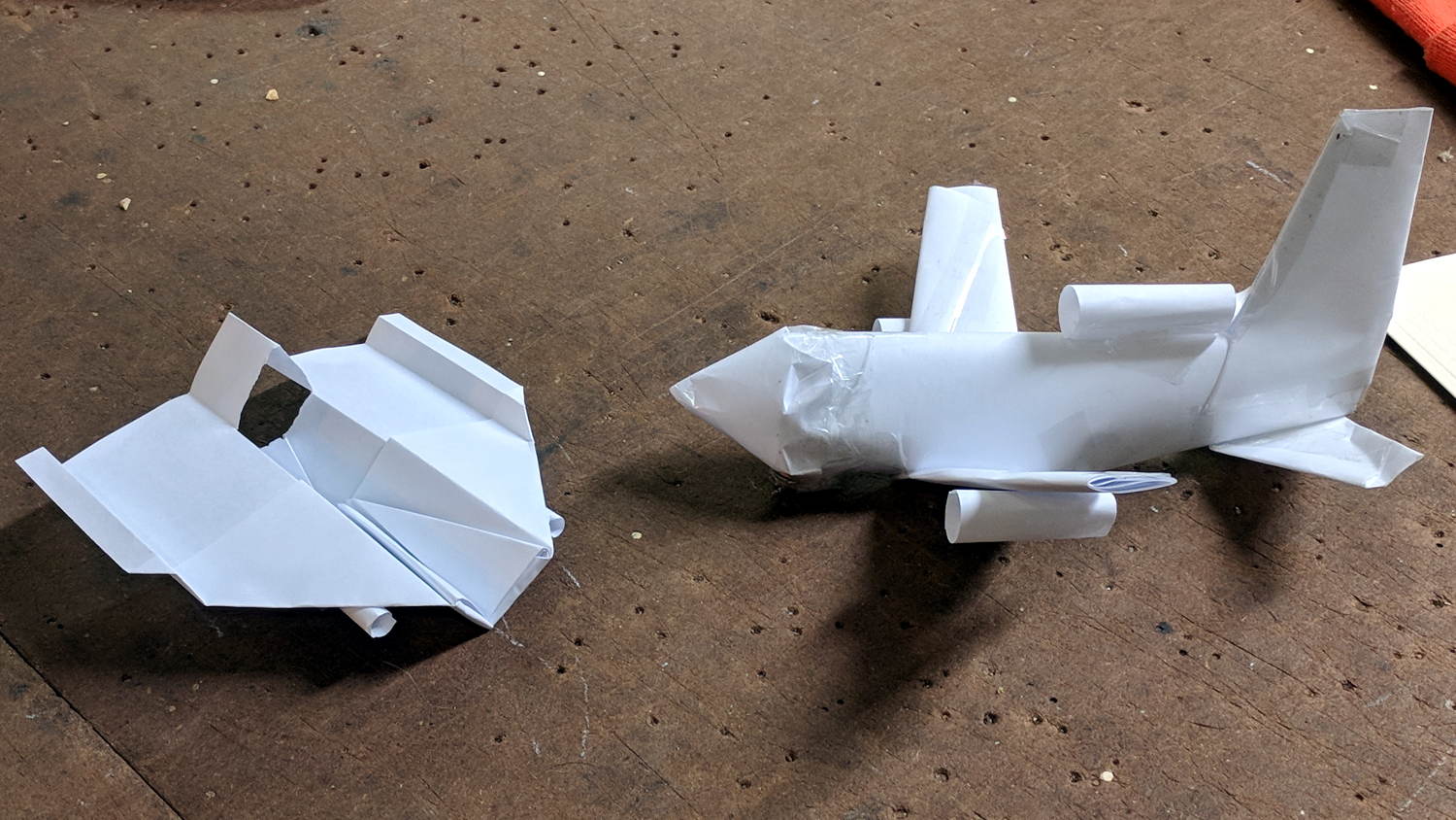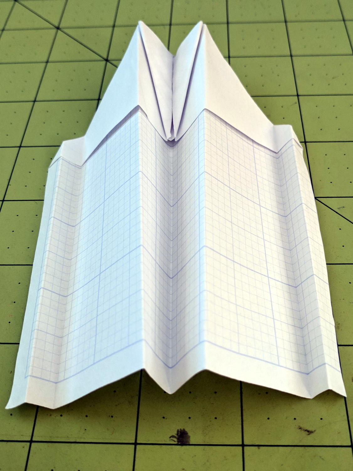 Milo showed how to construct his realistic-looking paper airplane design at Squidwrench, so I had to fold an airplane pattern I learned in fifth grade: