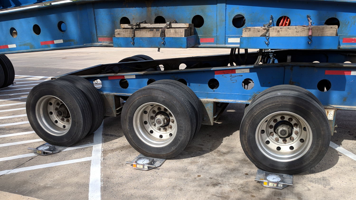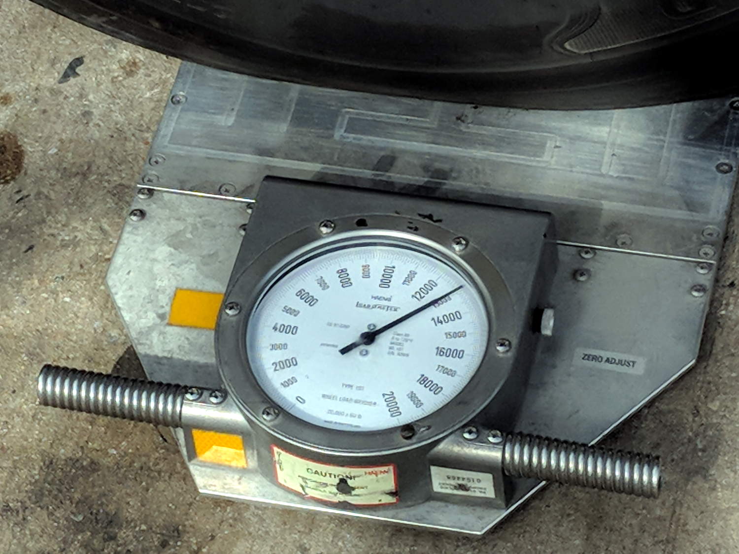 The PA transportation folks were verifying the overall weight and per-axle distribution by weighing three axles at a time: