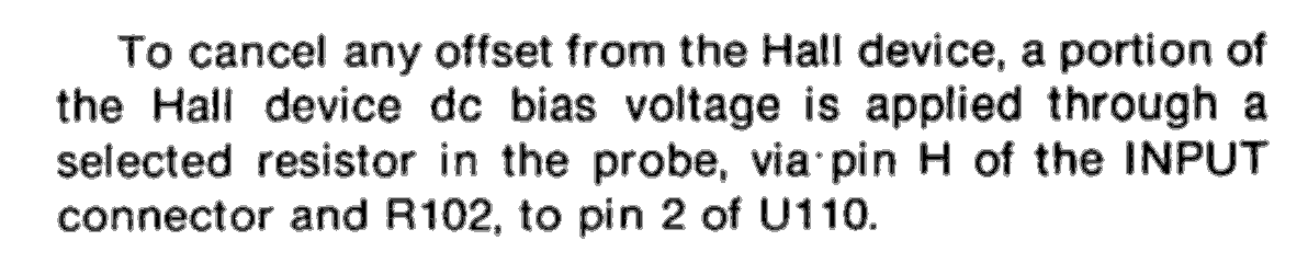 Huh. Even a blind pig occasionally finds a truffle: where have we seen that value before? Apparently Tek measured each transformer / Hall sensor and wrote the appropriate offset resistor value exactly where it’d do the most good.